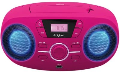 CD-Spieler mit integriertem Radio und USB-Anschluss für MP3-Wiedergabe. Die Lautsprecherboxen geben tolle Lichteffekte in verschiedenen Farben passend zur Musik.
