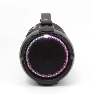Der Denver BTG-408 in schwarz ist ein Bluetooth-Lautsprecher mit praktischem Tragegriff, den Sie überall hin mitnehmen können. Neben einer tollen Klangqualität mit kraftvollen Bässen sieht er dank seines hochwertigen Gehäuses und der großzügigen LED-Beleuchtung auch noch klasse aus. Mit 9,5W Audioausgang hat die Box genug Power für jede Gelegenheit. Über Bluetooth streamen Sie Musik vom Smartphone oder schließen ganz klassisch per AUX-IN ein Wiedergabegerät an. Es gibt auch einen USB-Eingang. Aufgeladen wird die Box mit einem 1500 mAh Lithium-Ionen-Akku, der mit dem mitgelieferten USB-Kabel reibungslos funktioniert. Dank IPX5 Spritzwasserschutz ist die Box bei jedem Wetter einsatzbereit. Um auf jeder Party im Mittelpunkt zu stehen, verfügt der Lautsprecher außerdem noch über eine LED-Beleuchtung.