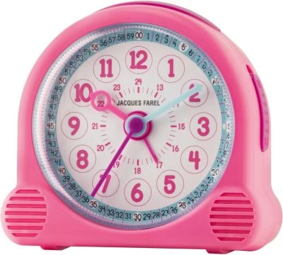 Ein echter Hingucker- der JACQUES FAREL Kinder Wecker in kräftigem Farbton! Damit Kindern das Erlernen der Uhrzeit erleichtert wird, sind Ziffernblatt und Zeiger unterschiedlich gefärbt.