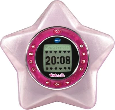 Der zauberhafte „KidiMagic Starlight“ von VTECH ist ein ganz besonderer Stern. Er spielt nicht nur die bereits integrierte Entspannungsmusik und Naturgeräusche ab, sondern wirft auf Wunsch auch die Uhrzeit an die Wand oder an die Decke. Für besonderen Spaß sorgt der Bewegungssensor: Hält man die Hand über den Stern, so verändert sich die Farbe in eine der sieben Varianten. Zum Erweitern des Musikangebots gibt es sogar einen Audioanschluss für einen externen Musik-Player.