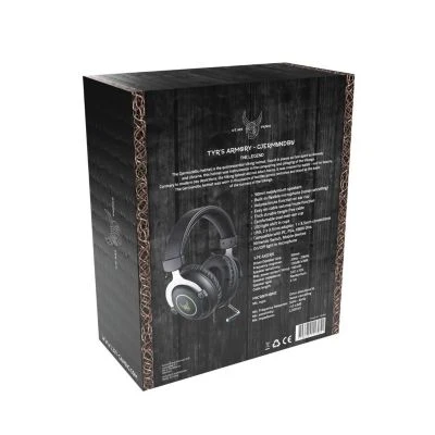 50mm-Neodymtreiber mit wechselnder LED-Beleuchtung in den Muscheln Integriertes, flexibles Mikrofon mit Noise Cancelling Einfacher Zugang zu Stummschaltung/Lautstärkeeinstellung am Ohr + Kabelfernsteuerung Dickes, haltbares und verschlaufungsfreies Flechtkabel Kompatibel mit PC, PS4, XBOX One, Nintendo Switch und Mobilgeräten Anschluss: Analog 3,5 mm Treiber: 50 mm Treiber-Typ: Neodym Frequenzbereich: 20Hz – 20kHz Frequenzgang (Mikrofon): 50Hz – 6kHz Impedanz: 32 Ohm ±15% Artikelfarbe: Schwarz Empfindlichkeit: 105dB ±3dB Baureihe: Tyr’s Serie Kabellänge: 2,1 m