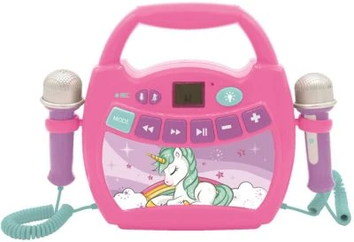 Einhorn Bluetooth-Lautsprecher.Funktioniert drahtlos mit allen gängigen Bluetooth® -Geräten sowie Smartphones und Tablets.Aux-In-Buchse, Micro-SD-Steckplatz und USB-Anschluss zum Anhören deiner Musik von externen Audiogeräten.2 eingebaute Mikrofone mit 3 Spracheffekte… eine hohe, tiefe oder Echo-Stimme.Aufnahmefunktion von Sprache und Musik.Wiederaufladbarer Akku über USB-C-Ladeanschluss (Kabel im Lieferumfang enthalten).Mehrfarbige Lichteffekte. Kopfhörerbuchse inbegriffen.Mit Griff an oberseite des Lautsprechers für den einfachen Transport.Altersempfehlung: Ab 3 JahreMaterial: KunststoffGröße: ca. 28 x 22 x 8 cm