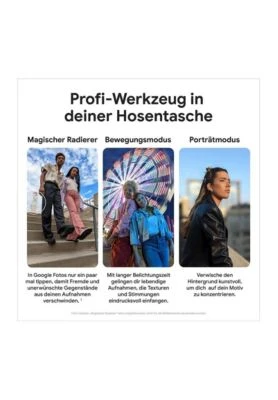 Die fortschrittlichste KameraRechengestützte Fotografie und Objektive der Profiklasse sorgen auf deinen Fotos für ausdrucksstarke Farben und lebhafte Details. Pixel 6 Pro hat ein Teleobjektiv mit 4-fachem optischen Zoom. Dank Super-Resolution-Zoom kannst du sogar bis zu 20-fach heranzoomen.Authentische, präzise PorträtsAuf Porträts mit Pixel 6 Pro werden alle Menschen mit ihren verschiedenen Hauttönen ganz authentisch und natürlich schön hervorgehoben.Alles, was man sich von einem Akku wünschtDein Pixel wird schnell und kabellos geladen und kann mit der Funktion „Akku teilen“ andere Geräte laden. Der Akku hält länger als 24 Stunden, dank intelligenter Akkunutzung für häufig verwendete Apps. Bei Aktivierung des Extrem-Energiesparmodus können wichtige Apps bis zu 48 Stunden lang genutzt werden.Ein echtes Multitalent für deinen AlltagDas 6,7″ große Smooth Display von Pixel 6 Pro ist aus Corning Gorilla Glass Victus hergestellt, dem bisher stärksten Gorilla Glass – und hat damit eine bis zu zweimal bessere Kratzbeständigkeit als alle früheren Pixel-Modelle. Dank Schutzklasse IP68 machen deinem Phone ein bisschen Wasser und Staub nichts aus.Wie gemacht für herausragende LeistungenDank der dynamischen 120-Hz-Aktualisierungsrate kannst du flüssiger spielen und schneller scrollen. Durch die LTPO-Technologie kann sich das Display auf 10 Hz herunterregeln, um den Akku zu schonen.Die Informationen, die du gerade brauchstDie Live-Anzeige zeigt dir anstehende Termine, Erinnerungen und andere Informationen zur richtigen Zeit – zum Beispiel deine Bordkarte, wenn du am Flughafen ankommst. Das Pixel 6 Pro ist nicht nur modern und stylish, sondern auch ein Phone, das genau auf deine Bedürfnisse abgestimmt ist.