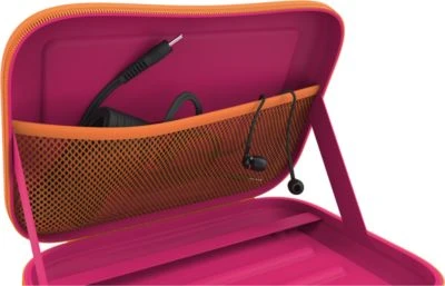 Mit praktischem Tragegriff, sowie Rasterungen innen um das Tablet zum spielen, Videos anschauen oder lesen im richtigen Winkel aufzustellen.