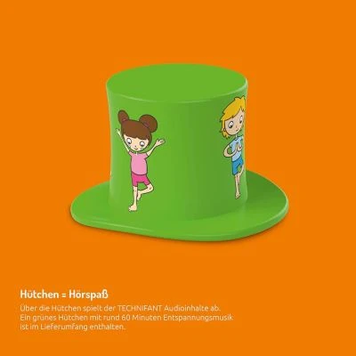 Der TECHNIFANT funktioniert sofort nach dem Auspacken, ohne komplizierte Einrichtung oder Abo, ein Hütchen mit Audioinhalten ist im Lieferumfang enthalten und bietet zudem Platz für weitere Inhalte.