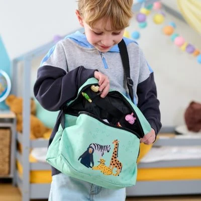Diese Universaltasche ist ein echter Helfer für Fans der Musikbox! Hinter dem großen Reißverschluss-Fach verbergen sich zwei Fächer sowie zehn Schlaufen für die Musikbox-Figuren. So kann alles auch unterwegs bequem aufbewahrt und praktisch transportiert werden! Dabei werden Box und Figuren optimal geschützt und bleiben stets unversehrt. So kann Ihr kleiner Liebling seine Musikbox kinderleicht zu Freunden und den Großeltern mitnehmen und es ist stets für lustige Unterhaltung gesorgt!