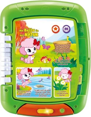 Das große Lern- und Geschichtentablet von Vtech begeistert die Kleinen mit seiner interaktiven Oberfläche und den beiden Welpen Anton und Bella. Lern- und Geschichtentablet von Vtech 2 Lernmodi (Geschichten- und Lernzeit) mit jeweils 6 Seiten leuchtende Taste mit Soundeffekten deutschsprachig Sensor, Lautstärkeregler, kindersicheres Batteriefach, Abschaltautomatik inkl. Demobatterien (2 x AA) ab 2 Jahren geeignet Das große Tablet hilft den Kleinen dabei, die ersten Vorschulinhalte spielerisch zu lernen. Lerninhalte sind: Wörter und Lesen, Gefühle, Farben und Formen, Natur und Wissenschaft sowie Spielen im Freien. Die Lernhinhalte werden durch die Geschichtenzeit (lustige Geschichten werden vorgelesen und Fragen dazu gestellt) und die Lernzeit (Begriffe der Geschichten werden aufgegriffen und vertieft) spielerisch vermittelt. Alle Bilder und Begriffe auf den insgesamt zwölf Seiten können angetippt werden. Die leuchtende Taste spielt zudem Lieder und spezifische Sätze ab – immer passend zur aufgeschlagenen Seite.
