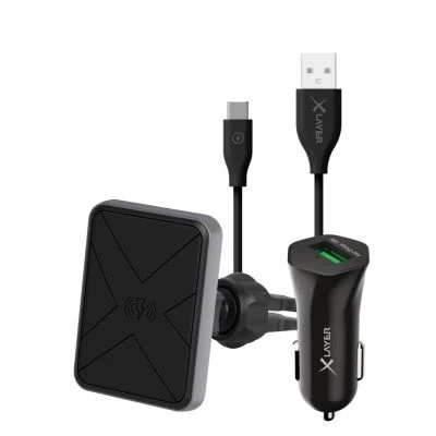 – 1 XLayer magfix Wireless Charging Magnethalterung, Qi-zertifiziert, Kfz-Starterset